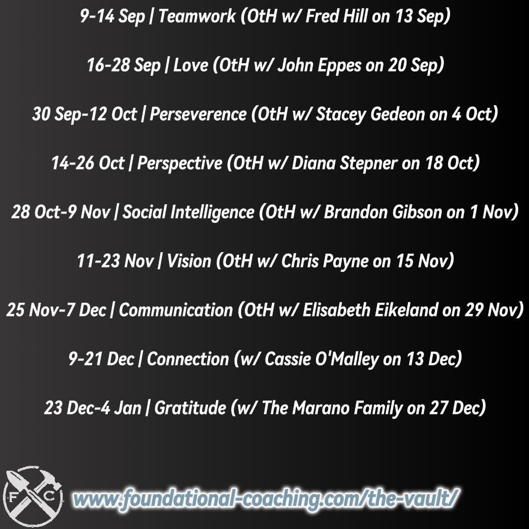 Join, follow, and share the Foundational Coaching community where I serve as your “guide on-the-go” through deliberate cycles of saturation, incubation, illumination, and application of virtuous living in ourselves, our teams, and our cultures!